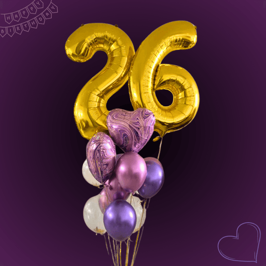 זר "מאיה" - זר עם ספרות ליום הולדת לאישה בצבעי סגול וזהב | בלוניטי