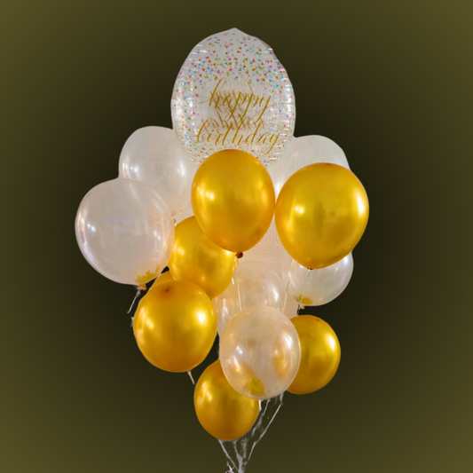 זר בלונים "אורי" - זר בלונים זהב לבן ליום הולדת | בלוניטי