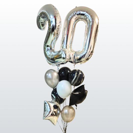 | בלוני מספרים | ציון גיל החוגג | גדלים שונים, צבעים מתכתיים | שילוב עם בלוני קונפטי |