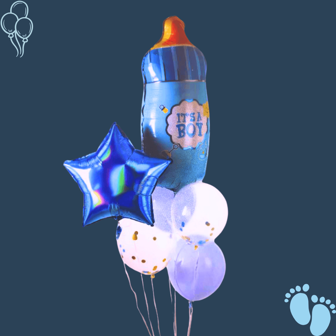 זר "רוני" - זר בלונים עם בלון בקבוק ליולדת בן | בלוניטי