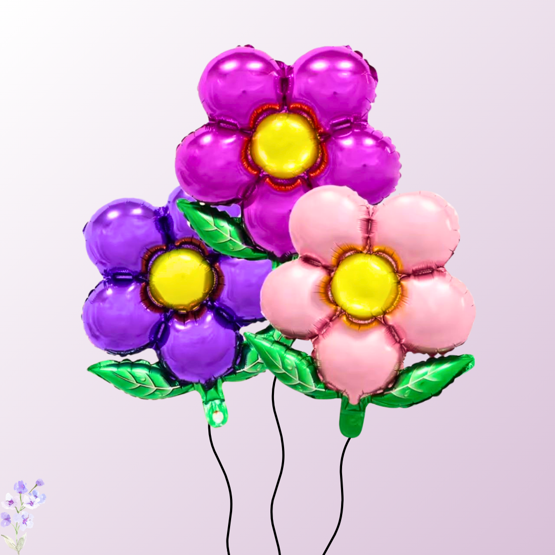 הזר מכיל - 3 בלונים בצורת פרחים בצבעים שונים