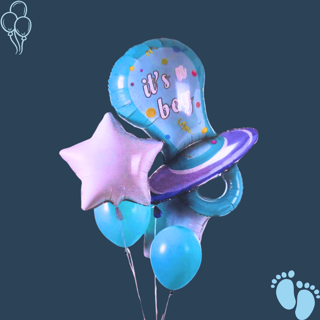זר בלונים מתנה ללידת בן עם בלון ענק בצורת מוצץ